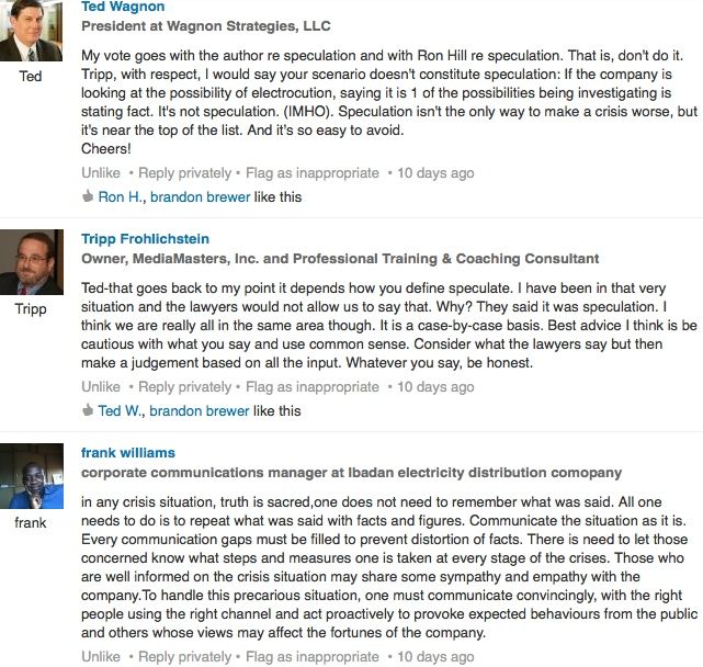 Crisis communication can be a “squishy” science, with very few constants. Here’s one constant I recommend: NEVER speculate during a crisis.
