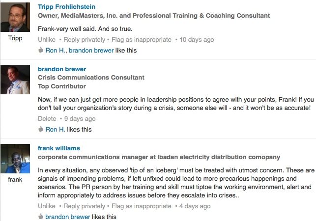 - Be wary of the “numbers game” in crisis – whether you’re talking about how many gallons of oil have spilled into a waterway or how many people have been affected by a natural disaster: the numbers always seem to change. See #2 above.
